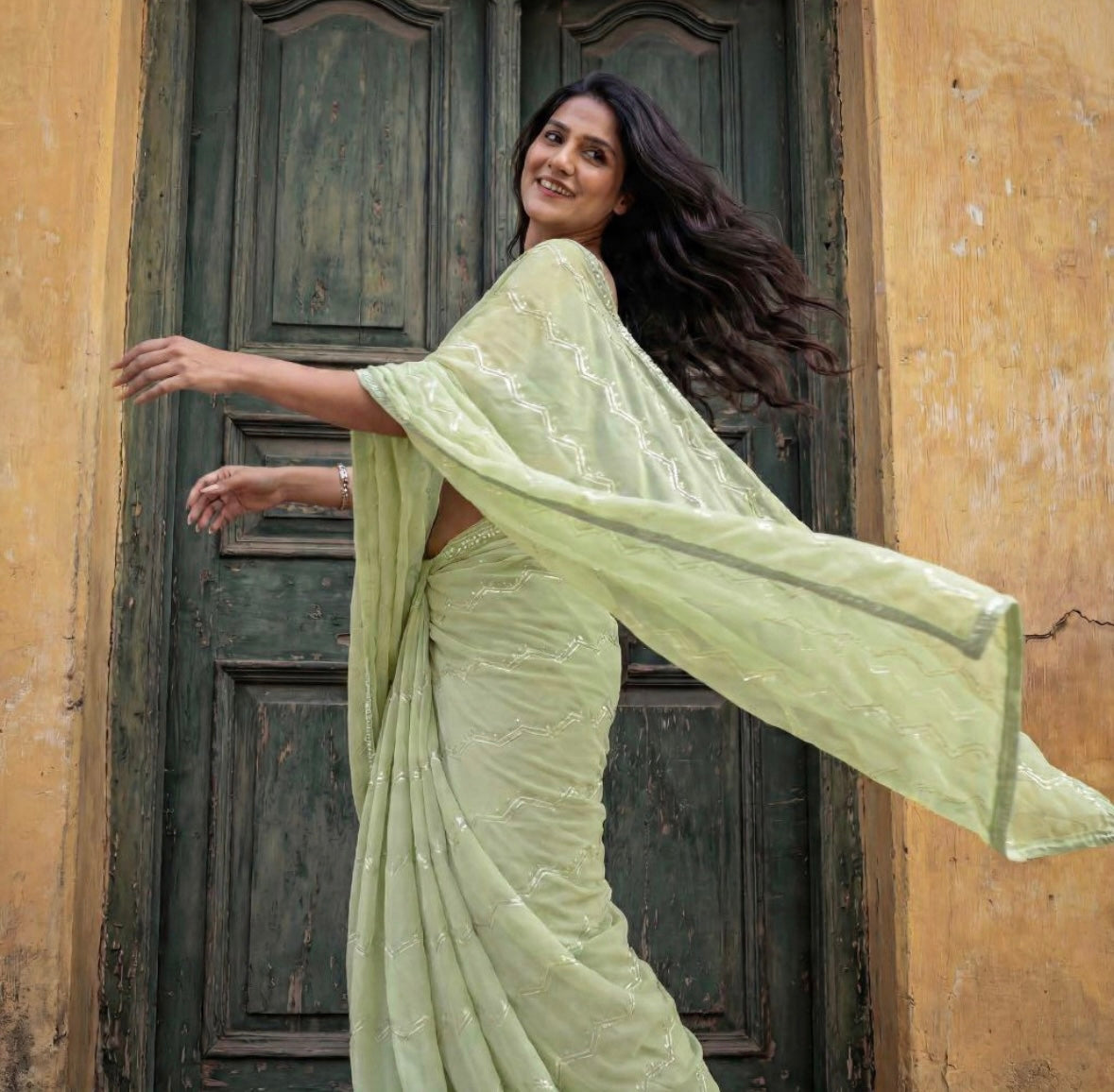 Green Printed Georgette | Ready To Wear Saree